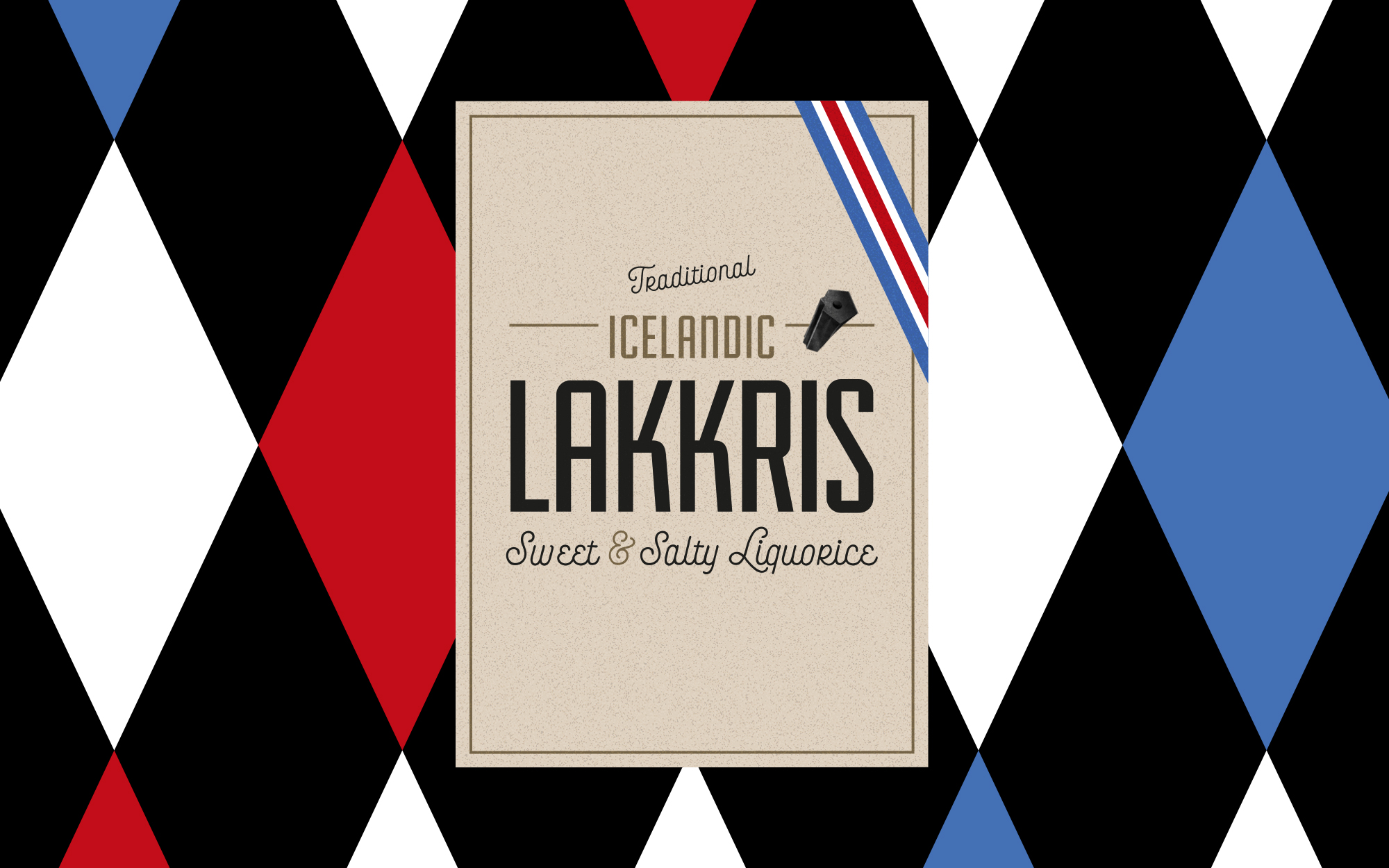 Líparít hannaði umbúðir á gamlu góðu Freyju lakkrísinn. Framhliðin er á ensku, þar sem pokinn var hugsaður til sölu á ferðamannastöðum, og þess vegna er fánaborði og skírskotun í fánaröndina/fánalitina í bakgrunnsgrafík. Tíglamynstrið í bakgrunni er einnig þekkt stef í vörum frá Freyju og sást fyrst í Hrís-pokunum og hefur oft verið notað í umbúðir og efni tengdu hefðinni.